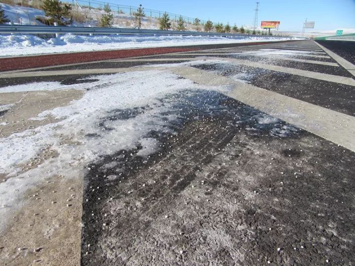 融雪剂是指可以降低冰雪融化温度的药剂,是一种化学品。普通融雪剂原料易得,价格低廉,其成份主要是醋酸钾和氯盐,并以这两种进行分类。融雪剂通过降低冰雪融化温度融化道路上的积雪,便于道路疏通,播撒处效果明显,但其具有危害性,研究发现,融雪剂残留物可腐蚀路面和汽车橡胶轮胎。北方在常冬下仍采用沙土和铲雪车为主,融雪剂为辅的方式清除路面冰雪,保证交通通畅。